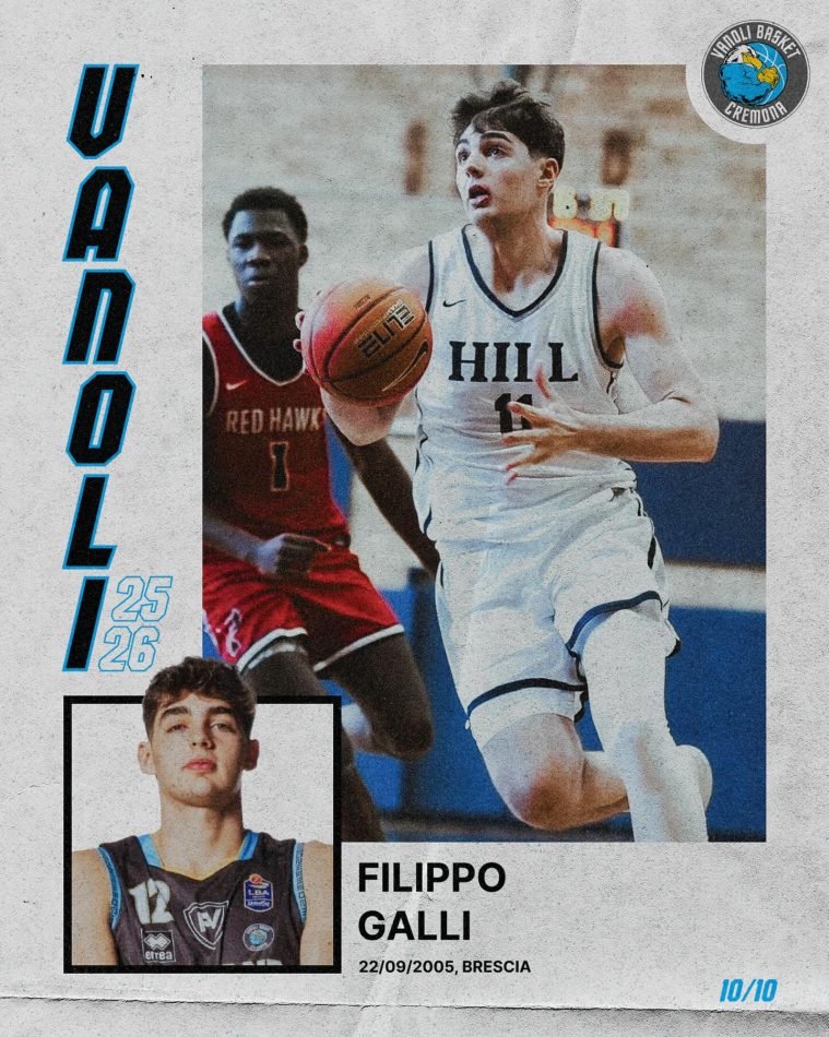 La società Vanoli Basket Cremona ha comunicato l’ingaggio di Filippo Galli, giovane talento nel ruolo di guardia e ala, per la stagione 2025/2026 di Serie A LBA. Questa scelta rappresenta un passo importante nel percorso di crescita del giocatore, che torna nella squadra della propria città dopo aver maturato esperienze sia a livello giovanile che senior.