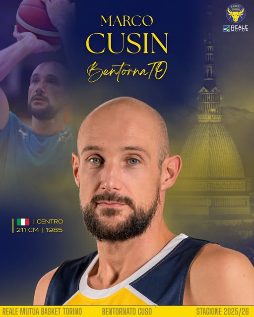 Dopo aver preso parte alla preparazione estiva con la squadra durante il ritiro di Bielmonte e aver giocato nell’ultimo scrimmage precampionato contro Omegna, Marco Cusin si è detto entusiasta del ritorno a Torino: «Sono molto felice di tornare a indossare questa maglia. Ringrazio tutto lo staff per la fiducia riposta in me. L’obiettivo è lavorare duramente insieme ai compagni per affrontare un campionato molto competitivo». Le parole del coach Paolo Moretti sottolineano l’importanza dell’arrivo dell’esperto centro: «L’ingresso di Marco rafforza notevolmente il nostro roster grazie alla sua vasta esperienza e alla volontà dimostrata nel mettersi al servizio della squadra».