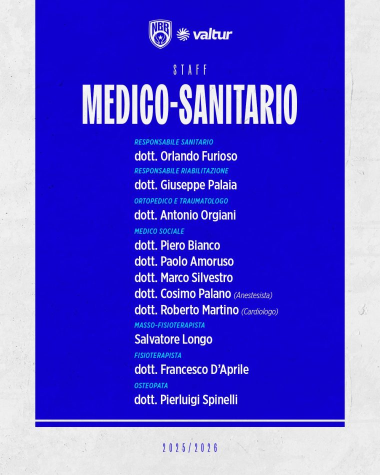 composizione dello staff medico-sanitario di valturi brindisi per la stagione 2025/26